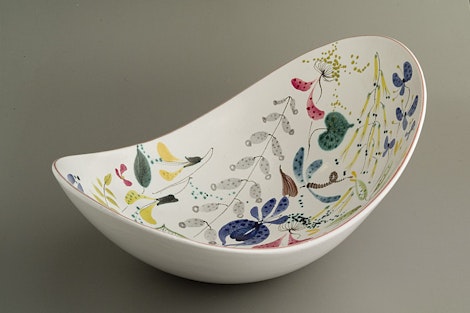 Bowl, Gustavsberg, design by Stig Lindberg, 37cm long, early 1950's hand painted | more samples: [1][2][3][4][5] |