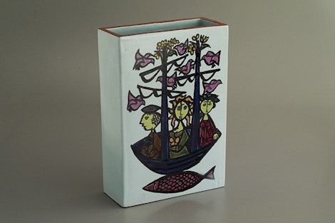 | Later (1970's?) slab vase (Gustavsberg) with a design by Stig Lindberg, 22cm high | more samples: [1][2][3][4][5] |